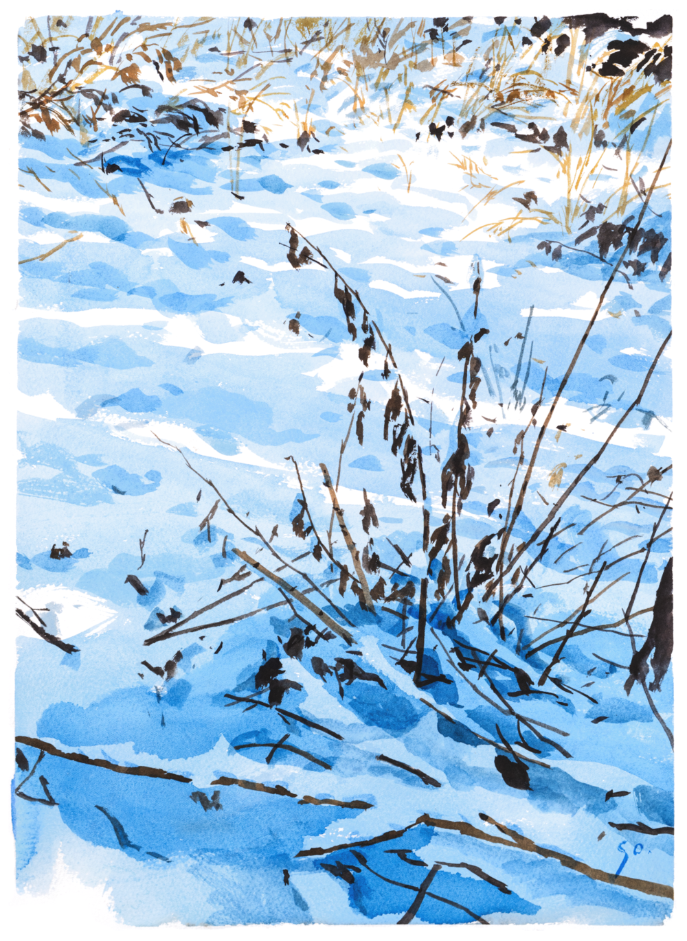 약 삼년간 겨울마다 꺼내그린 파주 문산의 겨울풍경은 단지 어떤 지역의 모습이기 전에 제가 오랜 도시 생활에서 잃어버린 감각을 깨우는 경험을 그린 것입니다. 처음 시골생활을 시작했고, 겨울이면 영하 30도를 넘나드는 긴 추위에 적응하며 저는 비로소 겨울없이는 그 어떤 봄도 오지 않는다는 사실을 체감합니다. 생각보다 눈이 자주 오지는 않았지만, 논밭에 쌓인 설경을 본 후로는 큰 눈이 내리고 난 뒤 양말을 두껍게 신고 아무도 밟지 않은 시골논두렁을 걷는것이 큰 기쁨이 되었어요. 시골이라 해도 인간의 손이 미치지 않은 곳 없지만 그래도 아직은 발견할 수 있는 자연의 신비로움과 환희, 혹독함 안에 잔재한 생명의 안위를 제가 감히 그릴수 있을까요? 고백하자면, 섣부른 위로를 하고자 그린 그림들은 아닙니다. 하지만 같이 걸을수는 있지요. 걸으며 하나씩 내려놓고, 다시 돌아오면 개운해 지시길.