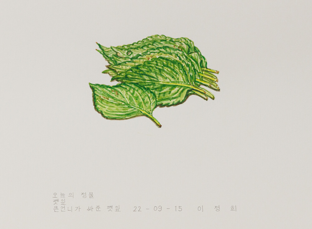 2022년 1월 <오늘의 정물>을 다시 시작했다. 시장에서 시금치, 토마토 같은 먹을거리를 사다가 하나씩 그렸다. 그리고 초안산, 우이천을 걷다가 발견한 풀, 나뭇가지도 가져와 하나씩 그렸다. 어디서나 쉽게 볼 수 있는 평범한 것들이지만 그것들 하나하나가 아름다운 모습을 가진 주인공처럼 보였다. 그래서 특별하지는 않지만 꿋꿋하고 성실하게 살아온 한사람의 초상화를 그리는 마음으로 하나의 정물을 그렸다. 지금까지 정물로 그린 먹을거리들은 대부분 먹어서 없어졌다. 먹지 못하는 것들은 시들어 죽거나, 부서져서 없어졌다. 그러니까 내가 그린 정물들은 이제 이곳에 없다. 그러나 내 몸 속에서 어떤 형태로 변화를 거쳐 나의 일부분이 되었다고 믿는다.