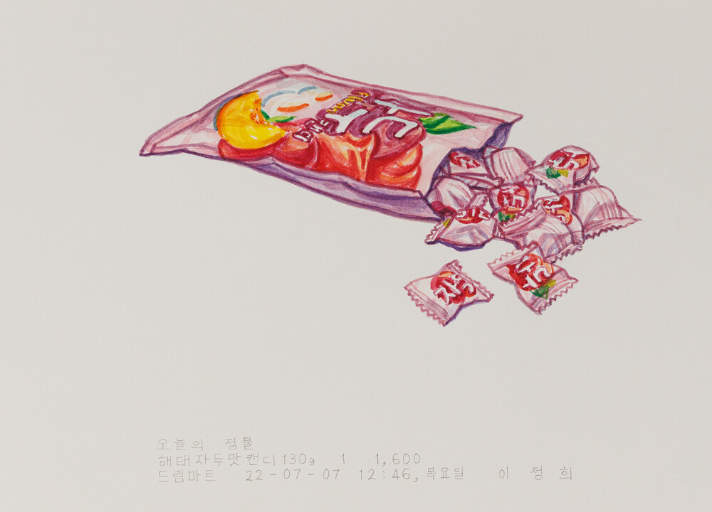 2018년에 <오늘의 정물>을 처음 시작했다. 전시장을 작업실로 사용하는 프로젝트 전시를 위해 한달 동안 전시장에 출근해서 작업을 했는데 허기를 채우기 위해 매일 간식거리를 사 먹었다. 먹으려고 사온 간식거 리를 힘 빼고 연필로 한장씩 그렸다. 내가 먹을 음식물을 그림의 모델로 보고 있으니까 그 행위가 마치 나 자신을 저쪽 자리에 두고 관찰하는 일 같았다.