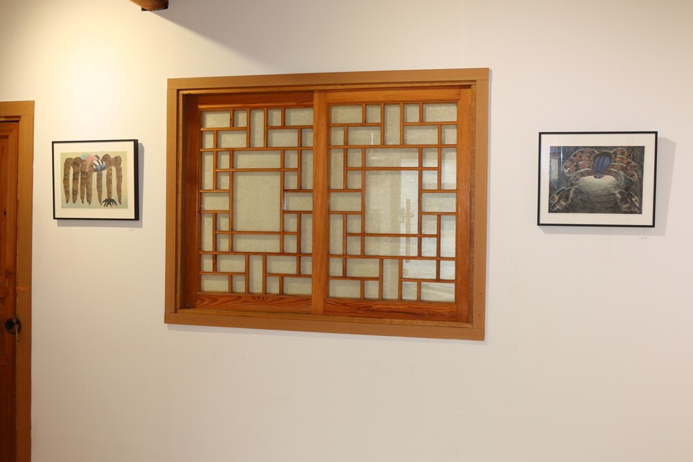 공작거미와 검은거미, 31x22cm, 종이에 과슈, 2022.(액자포함)