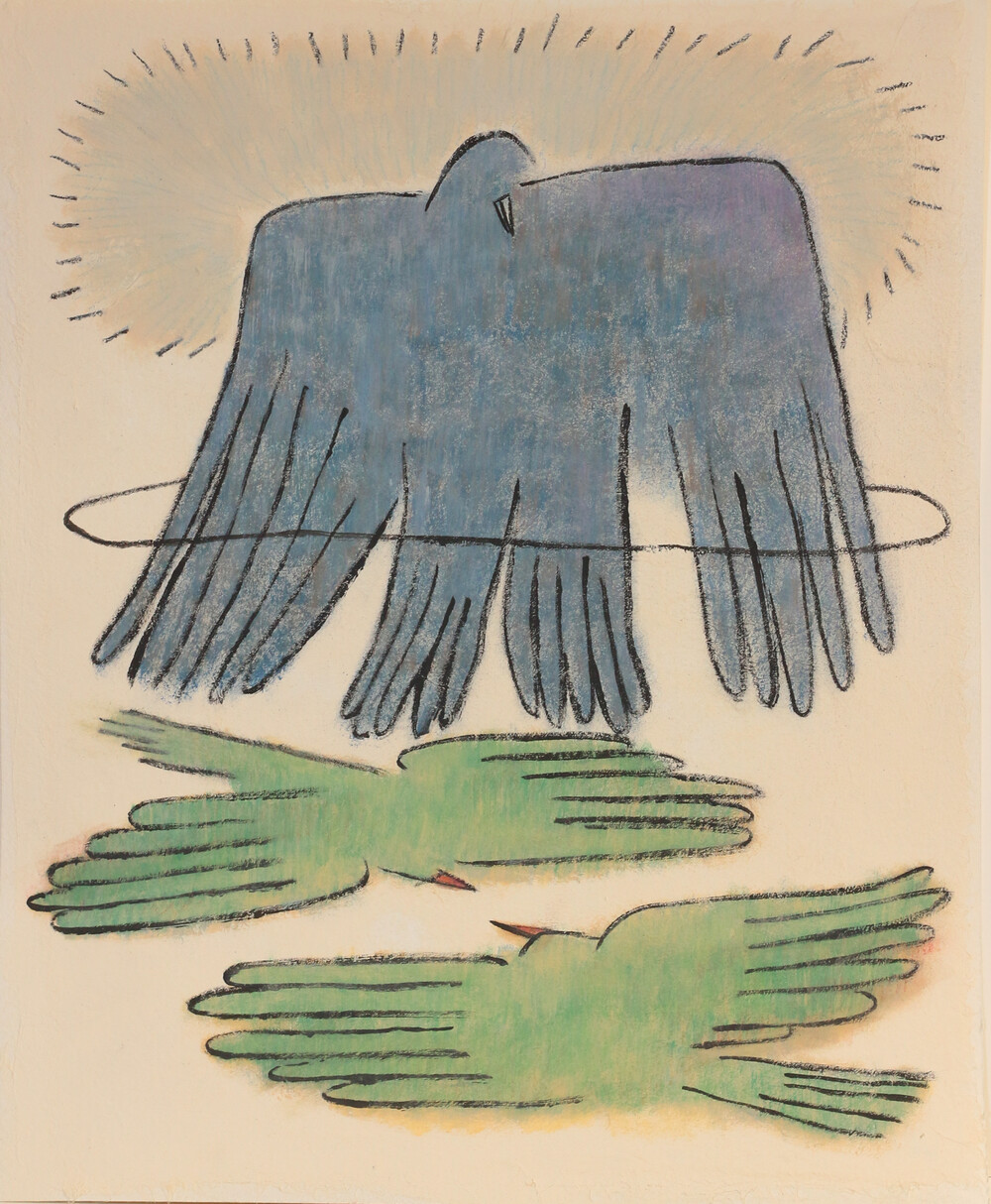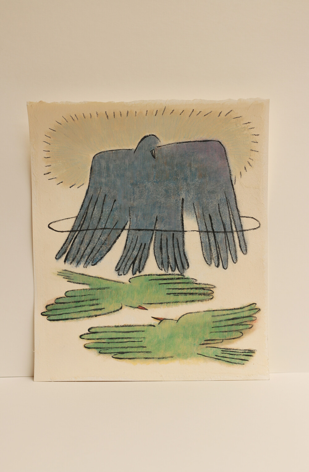 푸른 새들, 24 x 29cm, 종이에 한지와 과슈, 2024.