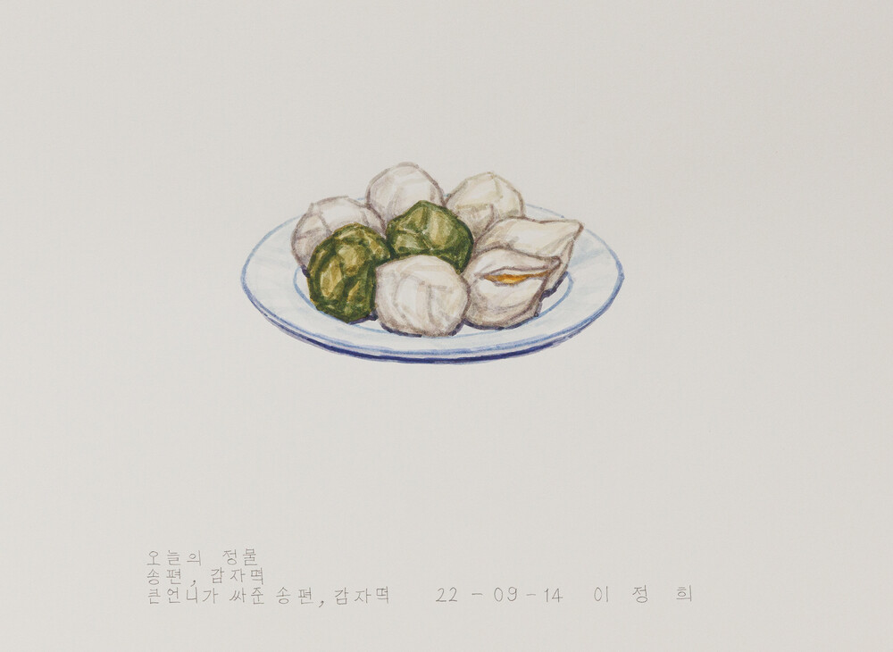 2018년에 <오늘의 정물>을 처음 시작했다. 전시장을 작업실로 사용하는 프로젝트 전시를 위해 한달 동안 전시장에 출근해서 작업을 했는데 허기를 채우기 위해 매일 간식거리를 사 먹었다. 먹으려고 사온 간식거 리를 힘 빼고 연필로 한장씩 그렸다. 내가 먹을 음식물을 그림의 모델로 보고 있으니까 그 행위가 마치 나 자신을 저쪽 자리에 두고 관찰하는 일 같았다.