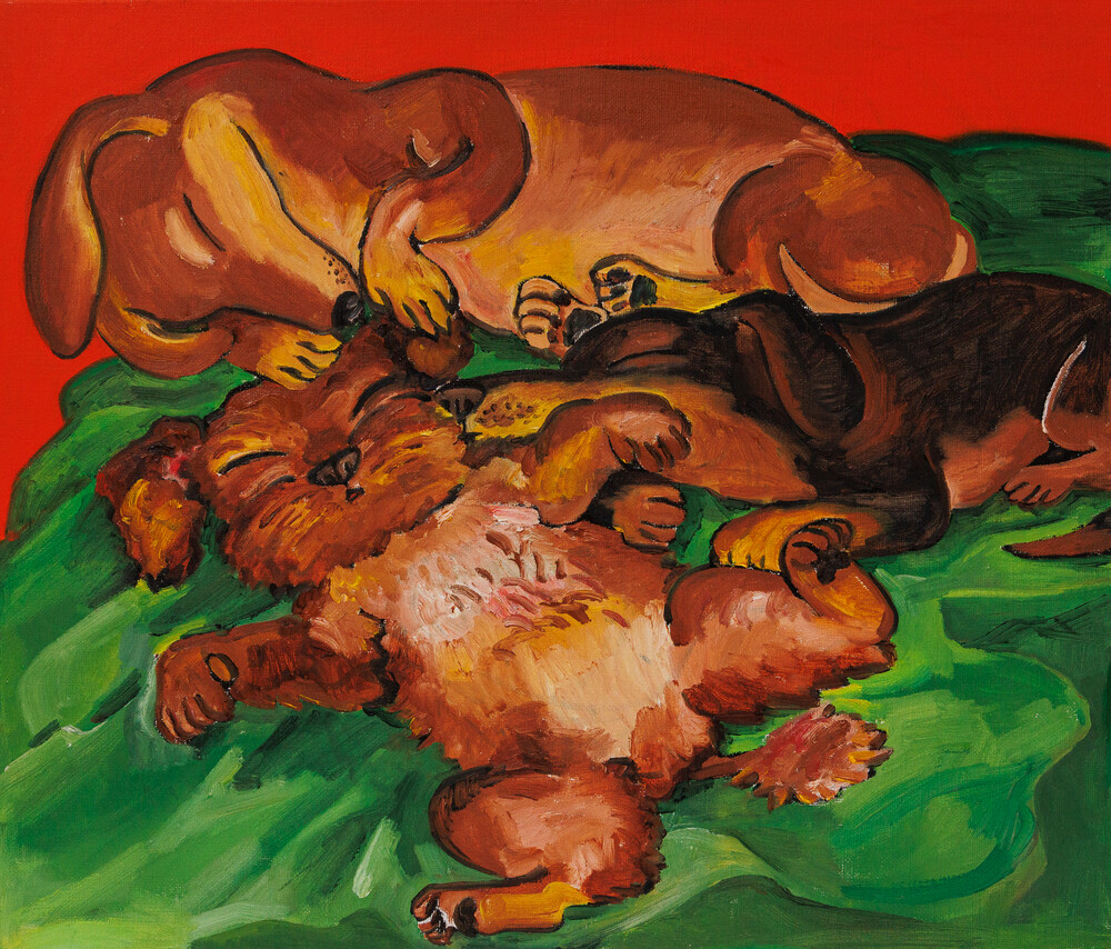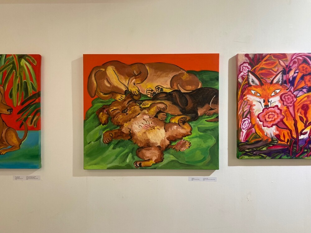 … 나는 그 개를 나처럼 동시에 스스로를 싫어하고 혐오하는 것처럼 그 개를 미워하기도 했다는 것을 인정했다. 개가 언젠가는 일찍 떠나서 내 일상에서 사라져 버리는 날도 올 것이라는 걸 되새겼다. 점점 더 개를 그리고 싶어졌다. 개와 살아온 시간만큼 개의 습성과 몸의 구조를 알아서 그들의 자세도 감정도 자연스럽게 상상할 수 있었다. 외롭고 신나고 서로에게 의지하고 차분히 응시하기도 하는 개들을 그렸다. 두려워하지만 호기심에 찬 개들. 결국 상상은 사람인 내 몫이었다. 그래서 그림 속 개의 눈은 인간을 닮았다. 불확실한 확신 속에서 그들의 마음을 상상하는 일이 즐거웠다…