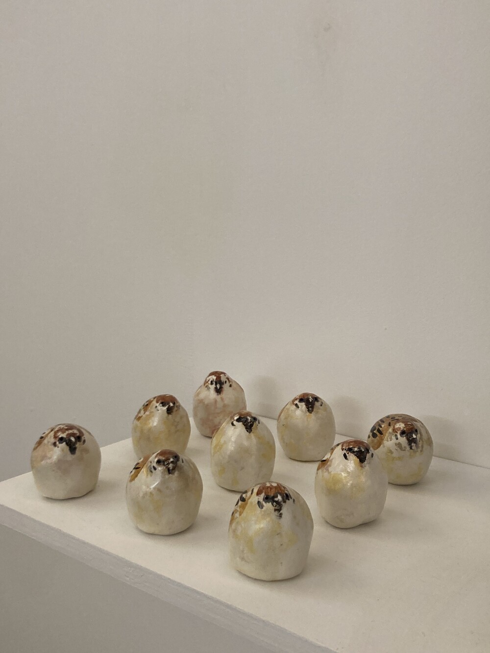 <참새, 5x5cm(가변크기), 지점토 과슈 바니쉬, 2022>