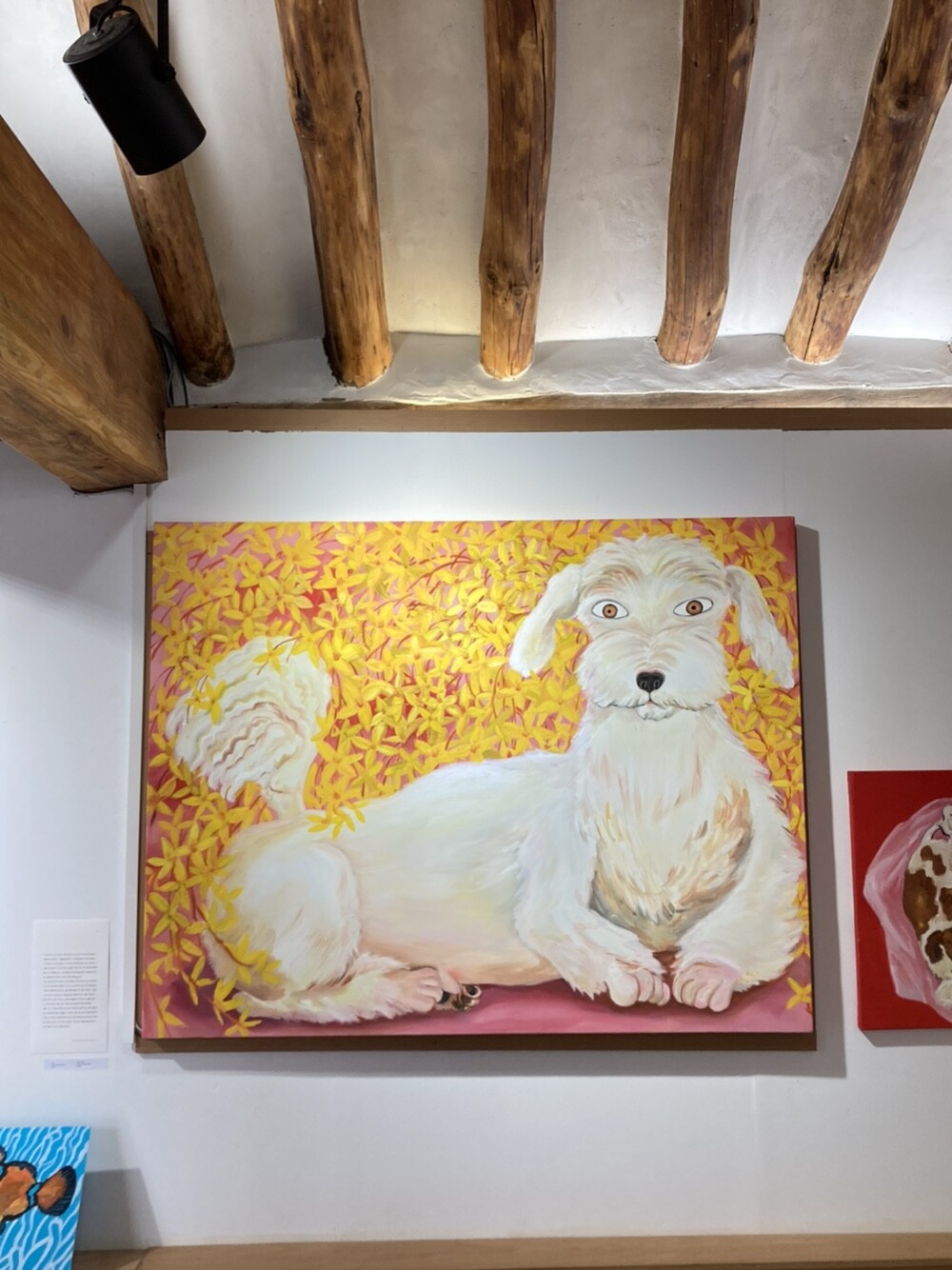 … 나는 그 개를 나처럼 동시에 스스로를 싫어하고 혐오하는 것처럼 그 개를 미워하기도 했다는 것을 인정했다. 개가 언젠가는 일찍 떠나서 내 일상에서 사라져 버리는 날도 올 것이라는 걸 되새겼다. 점점 더 개를 그리고 싶어졌다. 개와 살아온 시간만큼 개의 습성과 몸의 구조를 알아서 그들의 자세도 감정도 자연스럽게 상상할 수 있었다. 외롭고 신나고 서로에게 의지하고 차분히 응시하기도 하는 개들을 그렸다. 두려워하지만 호기심에 찬 개들. 결국 상상은 사람인 내 몫이었다. 그래서 그림 속 개의 눈은 인간을 닮았다. 불확실한 확신 속에서 그들의 마음을 상상하는 일이 즐거웠다…