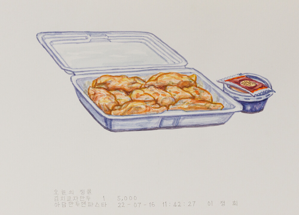 2018년에 <오늘의 정물>을 처음 시작했다. 전시장을 작업실로 사용하는 프로젝트 전시를 위해 한달 동안 전시장에 출근해서 작업을 했는데 허기를 채우기 위해 매일 간식거리를 사 먹었다. 먹으려고 사온 간식거 리를 힘 빼고 연필로 한장씩 그렸다. 내가 먹을 음식물을 그림의 모델로 보고 있으니까 그 행위가 마치 나 자신을 저쪽 자리에 두고 관찰하는 일 같았다.