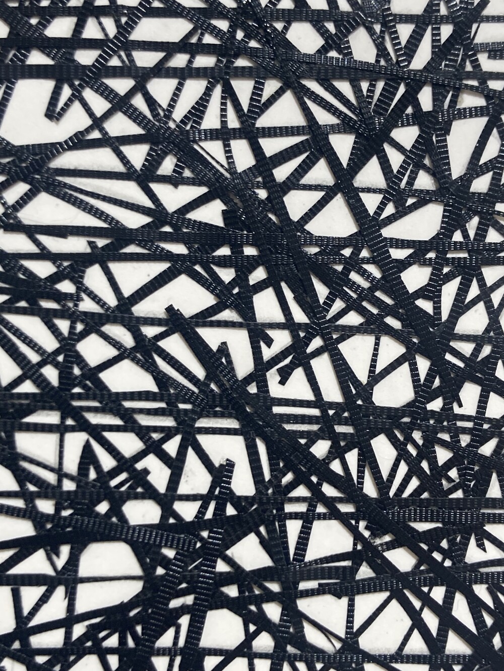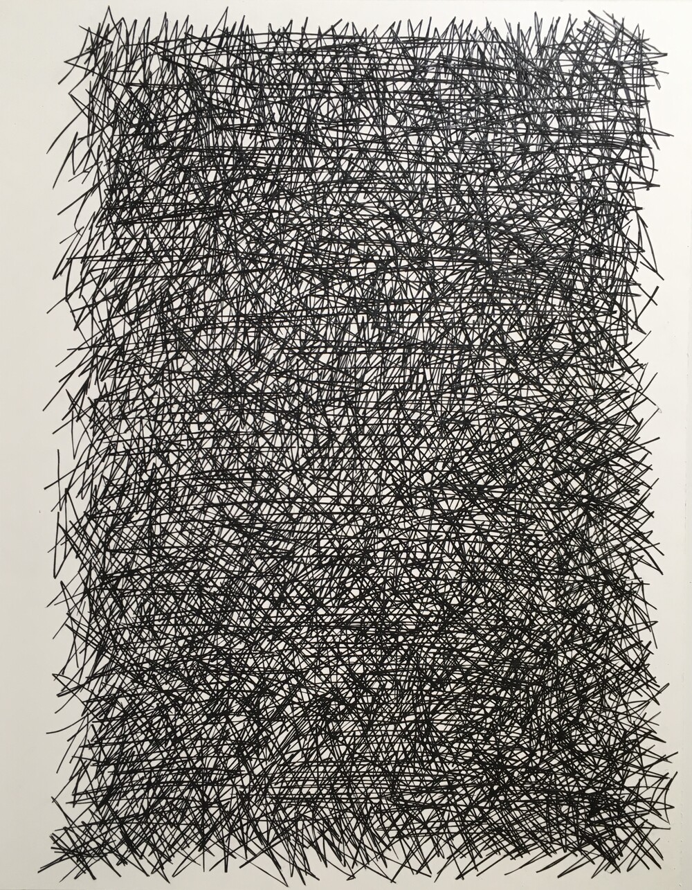 이 테이프 드로잉 작업은 연필로 스케치를 한 뒤 공업용 테이프를 얇게 오려 스케치한 선 위에 붙이는 방식이다.