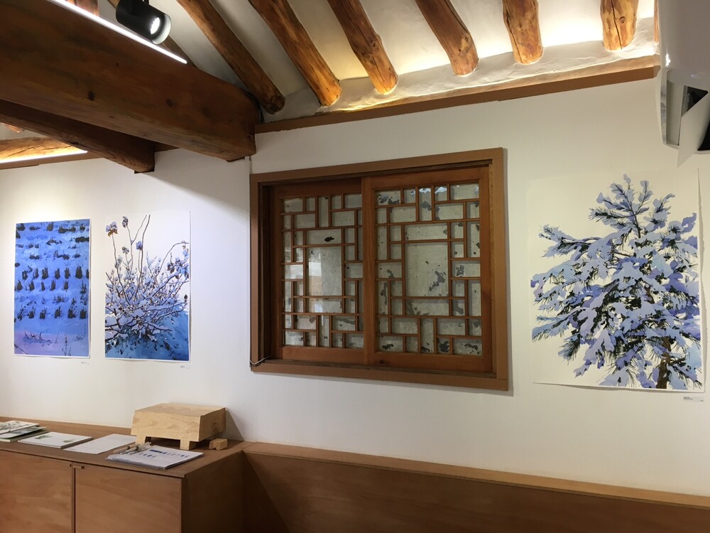 약 삼년간 겨울마다 꺼내그린 파주 문산의 겨울풍경은 단지 어떤 지역의 모습이기 전에 제가 오랜 도시 생활에서 잃어버린 감각을 깨우는 경험을 그린 것입니다. 처음 시골생활을 시작했고, 겨울이면 영하 30도를 넘나드는 긴 추위에 적응하며 저는 비로소 겨울없이는 그 어떤 봄도 오지 않는다는 사실을 체감합니다. 생각보다 눈이 자주 오지는 않았지만, 논밭에 쌓인 설경을 본 후로는 큰 눈이 내리고 난 뒤 양말을 두껍게 신고 아무도 밟지 않은 시골논두렁을 걷는것이 큰 기쁨이 되었어요. 시골이라 해도 인간의 손이 미치지 않은 곳 없지만 그래도 아직은 발견할 수 있는 자연의 신비로움과 환희, 혹독함 안에 잔재한 생명의 안위를 제가 감히 그릴수 있을까요? 고백하자면, 섣부른 위로를 하고자 그린 그림들은 아닙니다. 하지만 같이 걸을수는 있지요. 걸으며 하나씩 내려놓고, 다시 돌아오면 개운해 지시길.