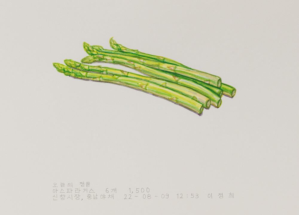 2022년 1월 <오늘의 정물>을 다시 시작했다. 시장에서 시금치, 토마토 같은 먹을거리를 사다가 하나씩 그렸다. 그리고 초안산, 우이천을 걷다가 발견한 풀, 나뭇가지도 가져와 하나씩 그렸다. 어디서나 쉽게 볼 수 있는 평범한 것들이지만 그것들 하나하나가 아름다운 모습을 가진 주인공처럼 보였다. 그래서 특별하지는 않지만 꿋꿋하고 성실하게 살아온 한사람의 초상화를 그리는 마음으로 하나의 정물을 그렸다. 지금까지 정물로 그린 먹을거리들은 대부분 먹어서 없어졌다. 먹지 못하는 것들은 시들어 죽거나, 부서져서 없어졌다. 그러니까 내가 그린 정물들은 이제 이곳에 없다. 그러나 내 몸 속에서 어떤 형태로 변화를 거쳐 나의 일부분이 되었다고 믿는다.