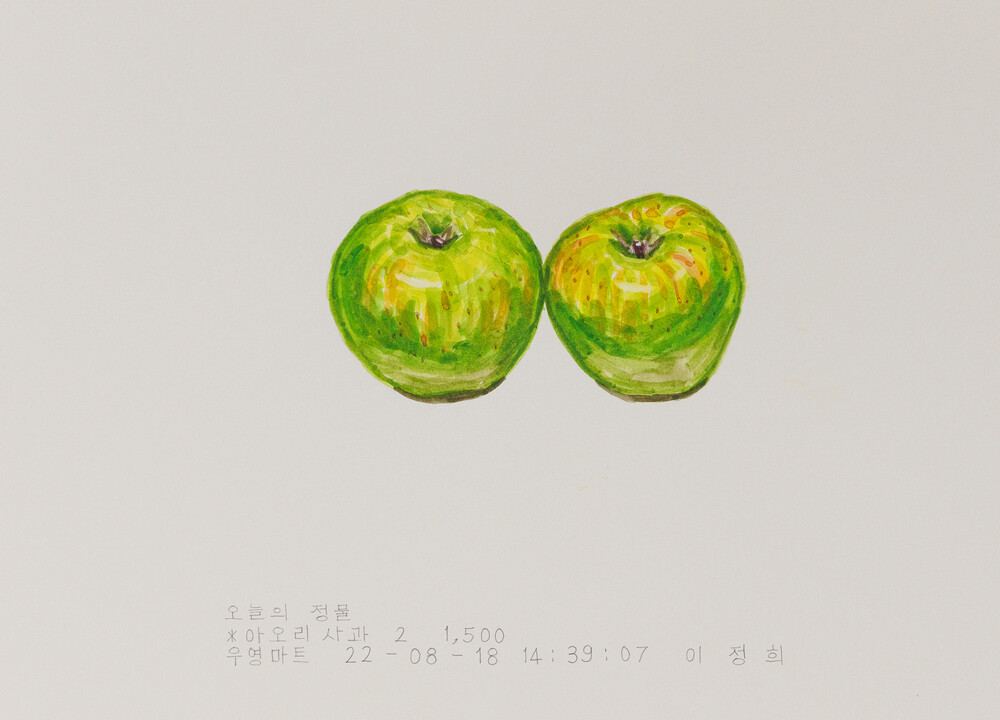 2022년 1월 <오늘의 정물>을 다시 시작했다. 시장에서 시금치, 토마토 같은 먹을거리를 사다가 하나씩 그렸다. 그리고 초안산, 우이천을 걷다가 발견한 풀, 나뭇가지도 가져와 하나씩 그렸다. 어디서나 쉽게 볼 수 있는 평범한 것들이지만 그것들 하나하나가 아름다운 모습을 가진 주인공처럼 보였다. 그래서 특별하지는 않지만 꿋꿋하고 성실하게 살아온 한사람의 초상화를 그리는 마음으로 하나의 정물을 그렸다. 지금까지 정물로 그린 먹을거리들은 대부분 먹어서 없어졌다. 먹지 못하는 것들은 시들어 죽거나, 부서져서 없어졌다. 그러니까 내가 그린 정물들은 이제 이곳에 없다. 그러나 내 몸 속에서 어떤 형태로 변화를 거쳐 나의 일부분이 되었다고 믿는다.