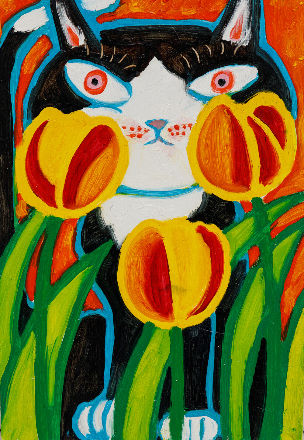 고양이 뺨, 나무에 유채, 158*227mm, 2022.