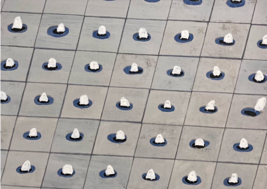 작은 수영장 2, 91 x 65 cm, 나무판넬에 한지와 과슈, 연필, 2023.