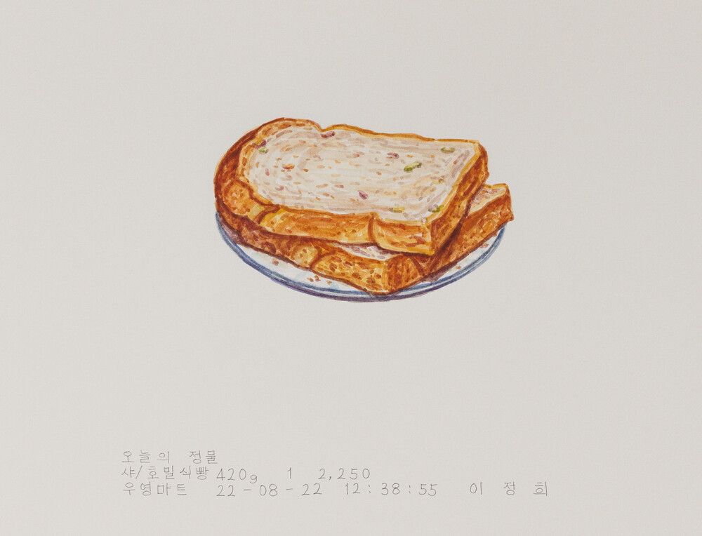 2018년에 <오늘의 정물>을 처음 시작했다. 전시장을 작업실로 사용하는 프로젝트 전시를 위해 한달 동안 전시장에 출근해서 작업을 했는데 허기를 채우기 위해 매일 간식거리를 사 먹었다. 먹으려고 사온 간식거 리를 힘 빼고 연필로 한장씩 그렸다. 내가 먹을 음식물을 그림의 모델로 보고 있으니까 그 행위가 마치 나 자신을 저쪽 자리에 두고 관찰하는 일 같았다.