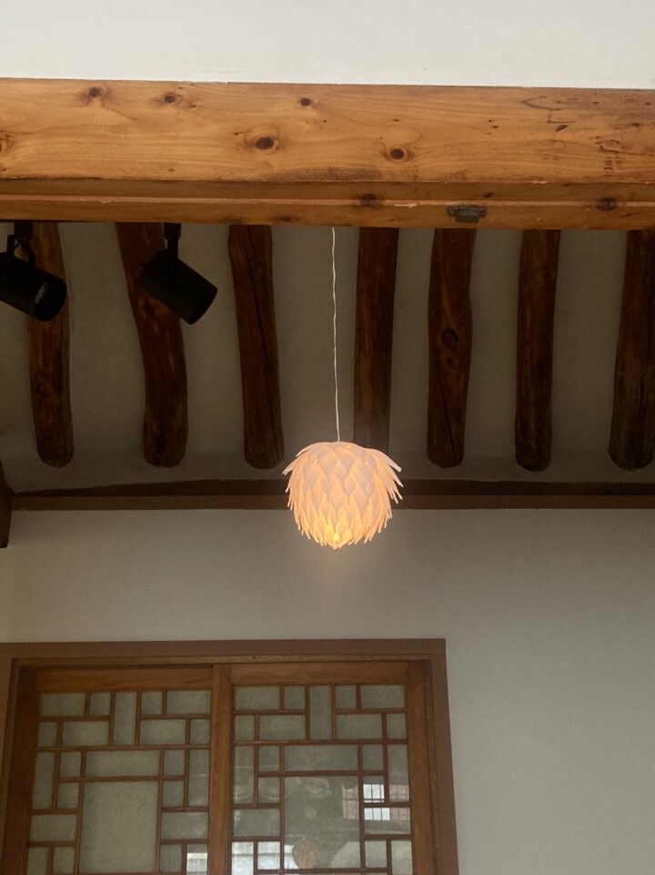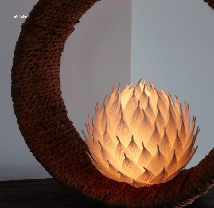 mulberry paper, pleated silk paper, rattan, brass, cable, adapter
