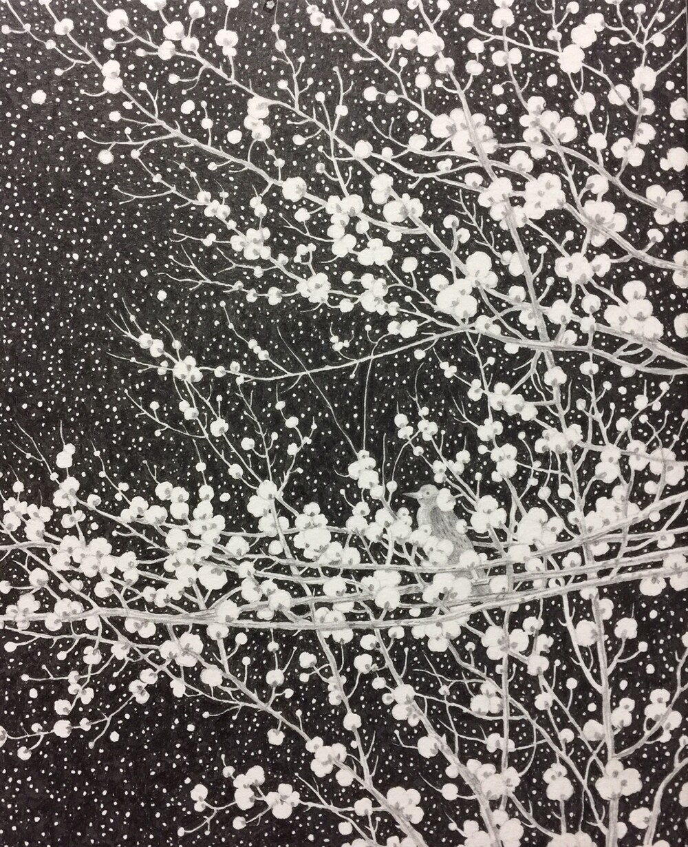Through countless delicate lines drawn with pen nibs and mechanical pencils,