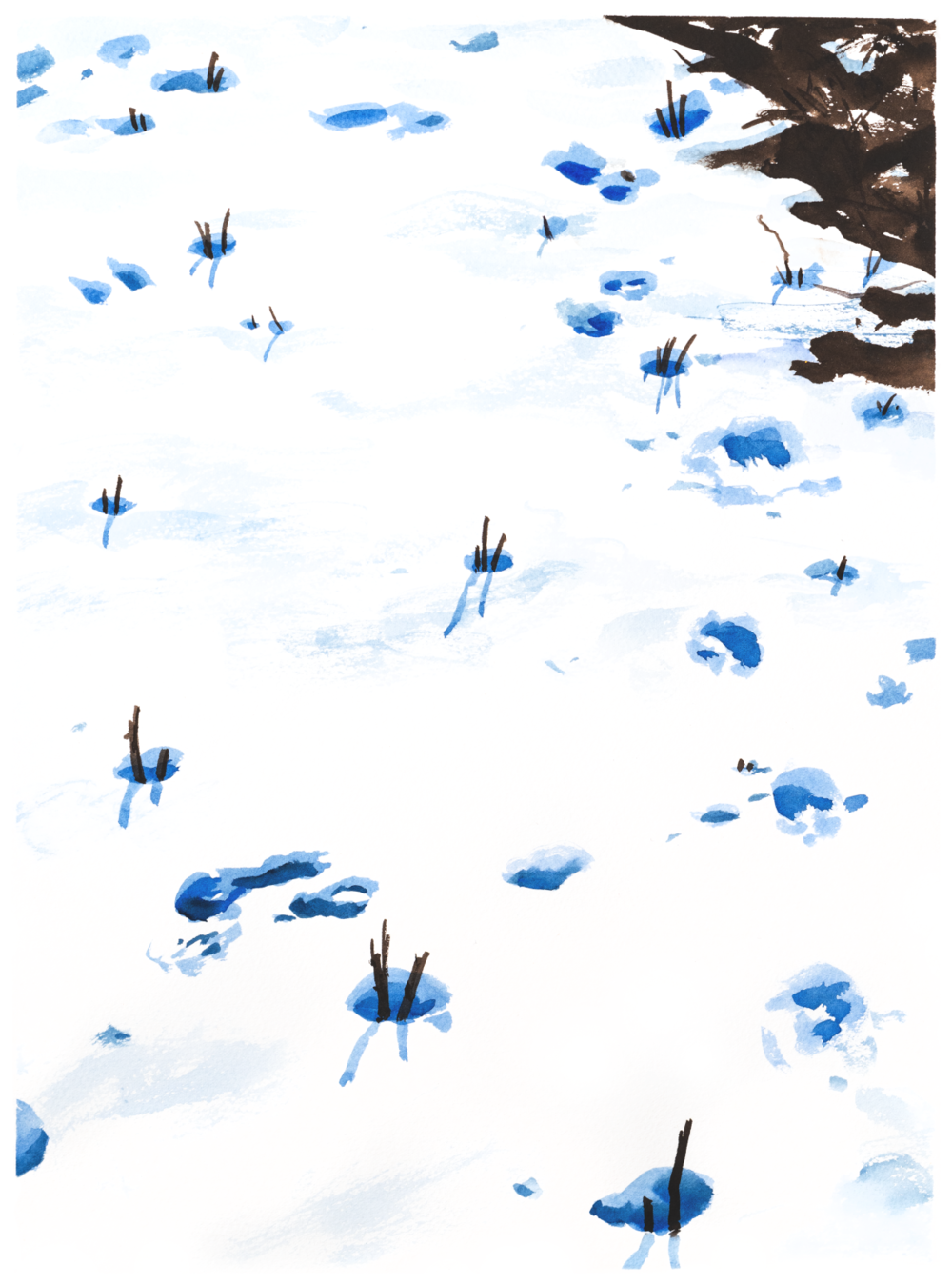 약 삼년간 겨울마다 꺼내그린 파주 문산의 겨울풍경은 단지 어떤 지역의 모습이기 전에 제가 오랜 도시 생활에서 잃어버린 감각을 깨우는 경험을 그린 것입니다. 처음 시골생활을 시작했고, 겨울이면 영하 30도를 넘나드는 긴 추위에 적응하며 저는 비로소 겨울없이는 그 어떤 봄도 오지 않는다는 사실을 체감합니다. 생각보다 눈이 자주 오지는 않았지만, 논밭에 쌓인 설경을 본 후로는 큰 눈이 내리고 난 뒤 양말을 두껍게 신고 아무도 밟지 않은 시골논두렁을 걷는것이 큰 기쁨이 되었어요. 시골이라 해도 인간의 손이 미치지 않은 곳 없지만 그래도 아직은 발견할 수 있는 자연의 신비로움과 환희, 혹독함 안에 잔재한 생명의 안위를 제가 감히 그릴수 있을까요? 고백하자면, 섣부른 위로를 하고자 그린 그림들은 아닙니다. 하지만 같이 걸을수는 있지요. 걸으며 하나씩 내려놓고, 다시 돌아오면 개운해 지시길.