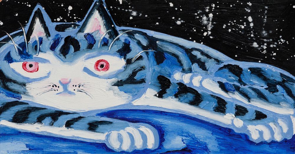 우주 고양이, 나무에 유채, 227*120mm, 2022.