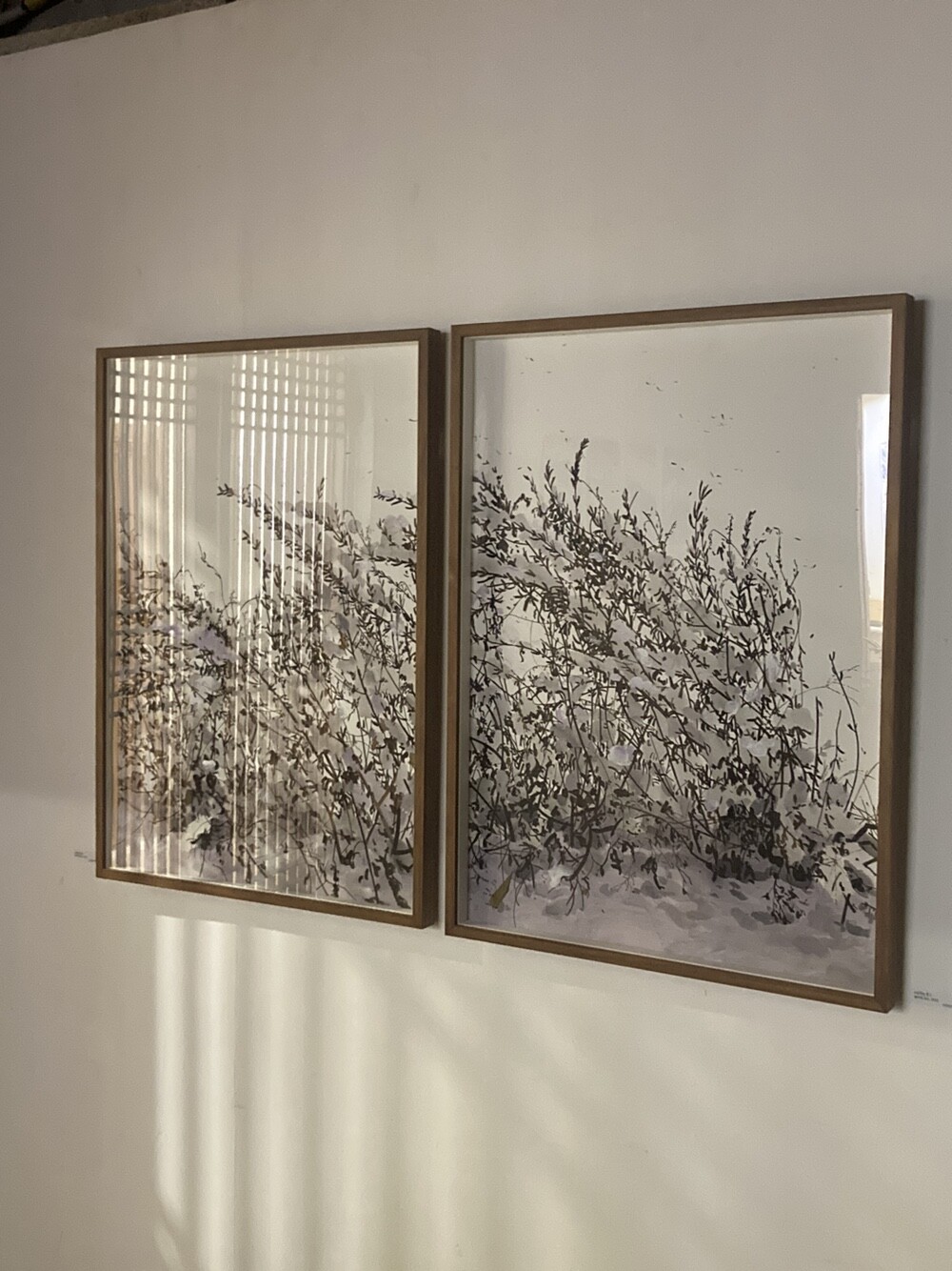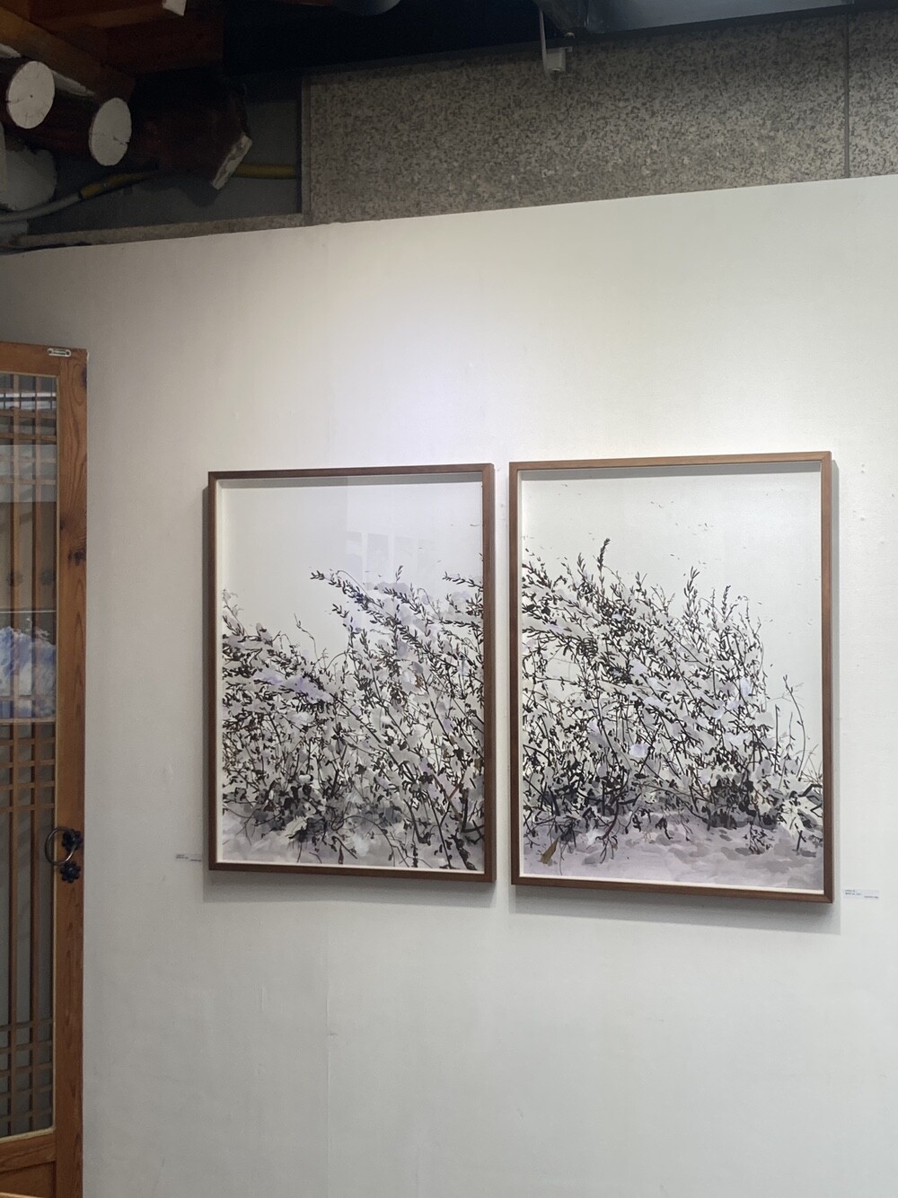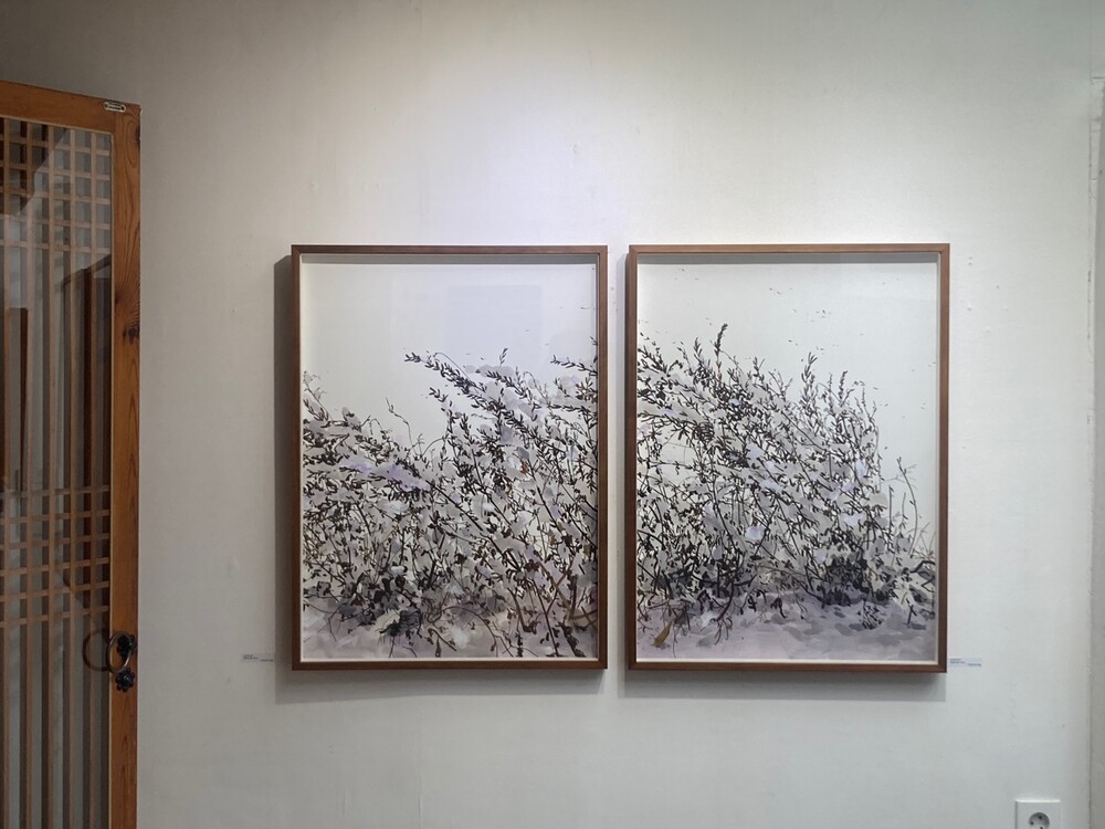 약 삼년간 겨울마다 꺼내그린 파주 문산의 겨울풍경은 단지 어떤 지역의 모습이기 전에 제가 오랜 도시 생활에서 잃어버린 감각을 깨우는 경험을 그린 것입니다. 처음 시골생활을 시작했고, 겨울이면 영하 30도를 넘나드는 긴 추위에 적응하며 저는 비로소 겨울없이는 그 어떤 봄도 오지 않는다는 사실을 체감합니다. 생각보다 눈이 자주 오지는 않았지만, 논밭에 쌓인 설경을 본 후로는 큰 눈이 내리고 난 뒤 양말을 두껍게 신고 아무도 밟지 않은 시골논두렁을 걷는것이 큰 기쁨이 되었어요. 시골이라 해도 인간의 손이 미치지 않은 곳 없지만 그래도 아직은 발견할 수 있는 자연의 신비로움과 환희, 혹독함 안에 잔재한 생명의 안위를 제가 감히 그릴수 있을까요? 고백하자면, 섣부른 위로를 하고자 그린 그림들은 아닙니다. 하지만 같이 걸을수는 있지요. 걸으며 하나씩 내려놓고, 다시 돌아오면 개운해 지시길.
