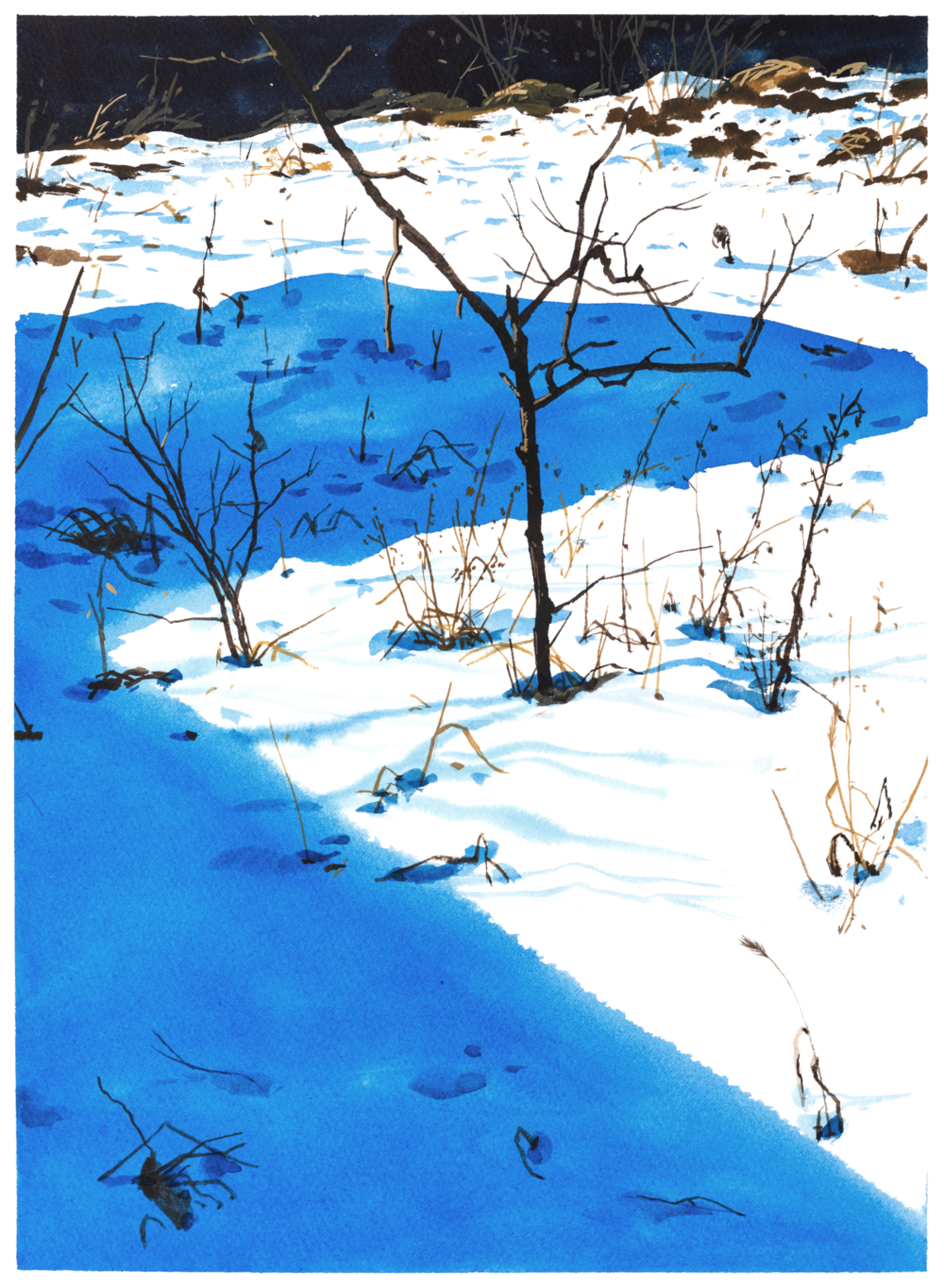 약 삼년간 겨울마다 꺼내그린 파주 문산의 겨울풍경은 단지 어떤 지역의 모습이기 전에 제가 오랜 도시 생활에서 잃어버린 감각을 깨우는 경험을 그린 것입니다. 처음 시골생활을 시작했고, 겨울이면 영하 30도를 넘나드는 긴 추위에 적응하며 저는 비로소 겨울없이는 그 어떤 봄도 오지 않는다는 사실을 체감합니다. 생각보다 눈이 자주 오지는 않았지만, 논밭에 쌓인 설경을 본 후로는 큰 눈이 내리고 난 뒤 양말을 두껍게 신고 아무도 밟지 않은 시골논두렁을 걷는것이 큰 기쁨이 되었어요. 시골이라 해도 인간의 손이 미치지 않은 곳 없지만 그래도 아직은 발견할 수 있는 자연의 신비로움과 환희, 혹독함 안에 잔재한 생명의 안위를 제가 감히 그릴수 있을까요? 고백하자면, 섣부른 위로를 하고자 그린 그림들은 아닙니다. 하지만 같이 걸을수는 있지요. 걸으며 하나씩 내려놓고, 다시 돌아오면 개운해 지시길.