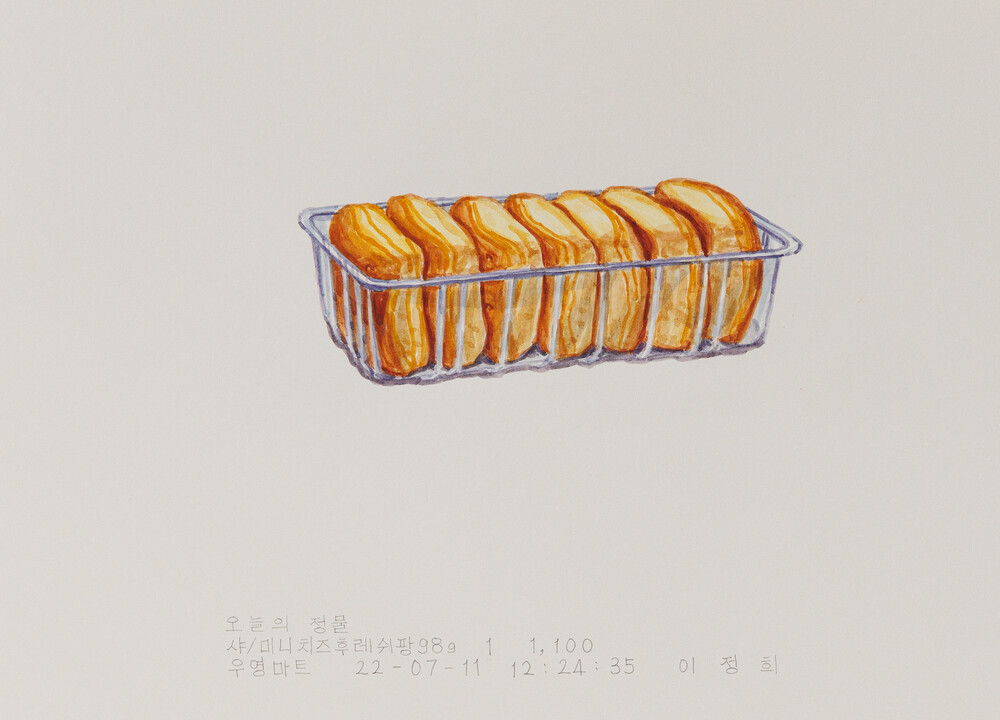 2018년에 <오늘의 정물>을 처음 시작했다. 전시장을 작업실로 사용하는 프로젝트 전시를 위해 한달 동안 전시장에 출근해서 작업을 했는데 허기를 채우기 위해 매일 간식거리를 사 먹었다. 먹으려고 사온 간식거 리를 힘 빼고 연필로 한장씩 그렸다. 내가 먹을 음식물을 그림의 모델로 보고 있으니까 그 행위가 마치 나 자신을 저쪽 자리에 두고 관찰하는 일 같았다.