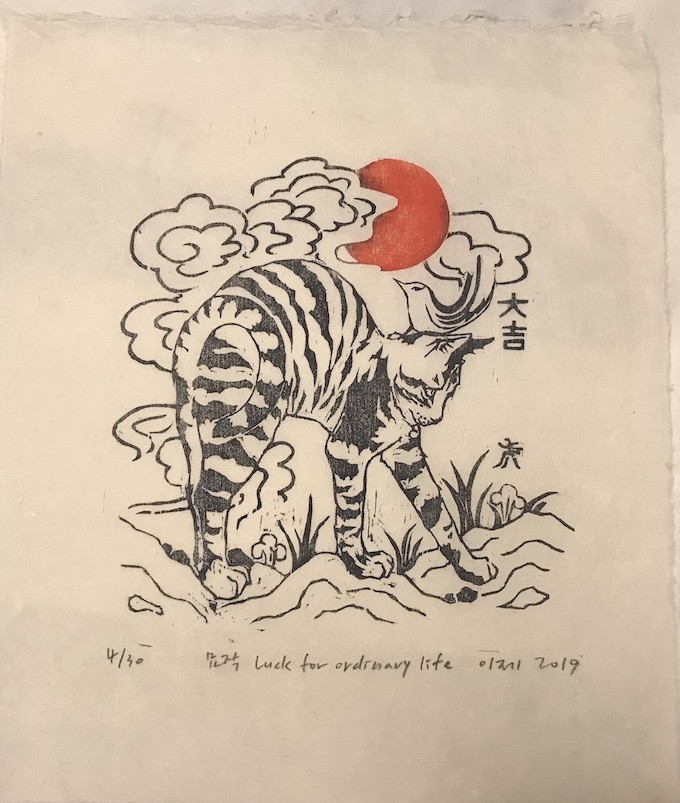 이제 작가의 판화 작품 '[묘작] Luck for ordinary life' 입니다.
